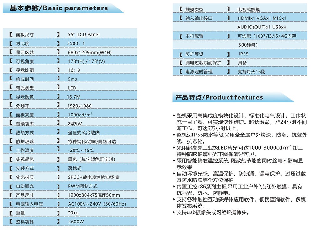 ◆内置工控x86系列主板,,,采用工业户外2点红外触摸,,,,具有抗强光,,,,防水、、、、防静电。。。。