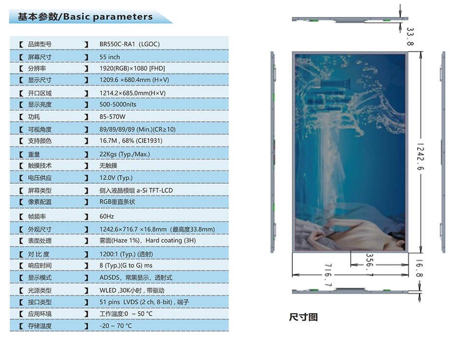 产品详情:55寸超薄侧入式高亮显示模块