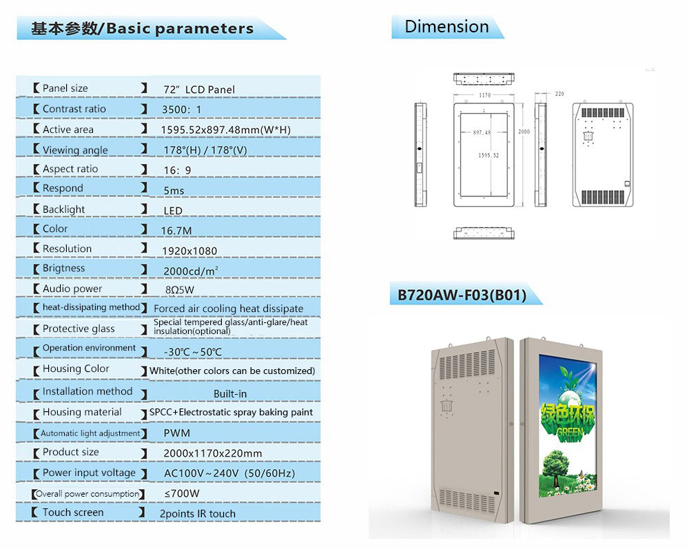 ◆ The front panel has a waterproof grade of ip65, and adopts all metal outdoor baking paint, which is moisture-proof, UV resistant and anti-aging.